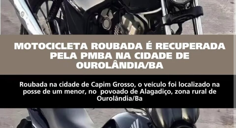 MOTOCICLETA ROUBADA É RECUPERADA PELA PMBA NA CIDADE DE OUROLÂNDIA/BA
