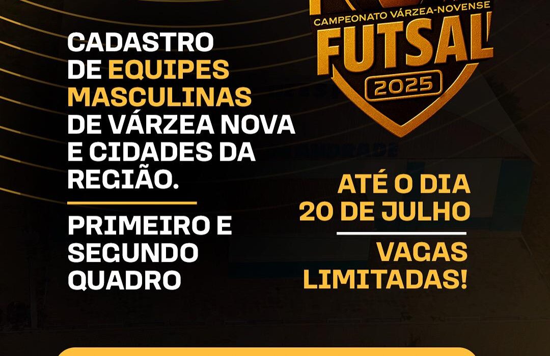 Preparem as chuteiras e a garra! Estão oficialmente abertas as inscrições para o aguardado Campeonato Várzea-Novense de Futsal 2025. A competição, que promete agitar a quadra do Ginásio de Esportes Jielton Macedo de Andrade, convida todas as equipes masculinas a demonstrarem seu talento e competirem pelo título.