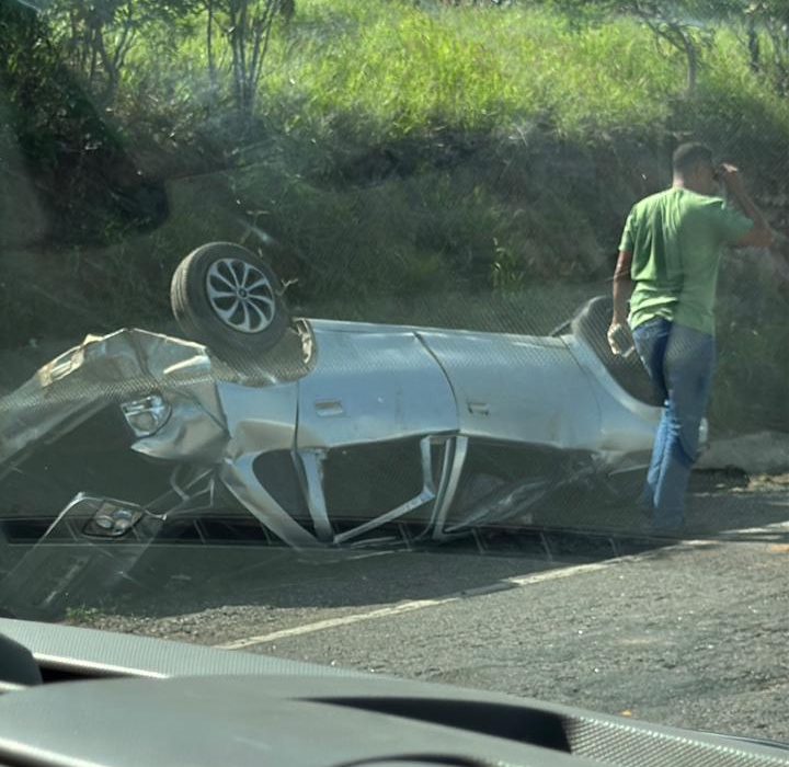 Carro capota na BA 131 nas proximidades do povoado dos Bagres em Miguel Calmon