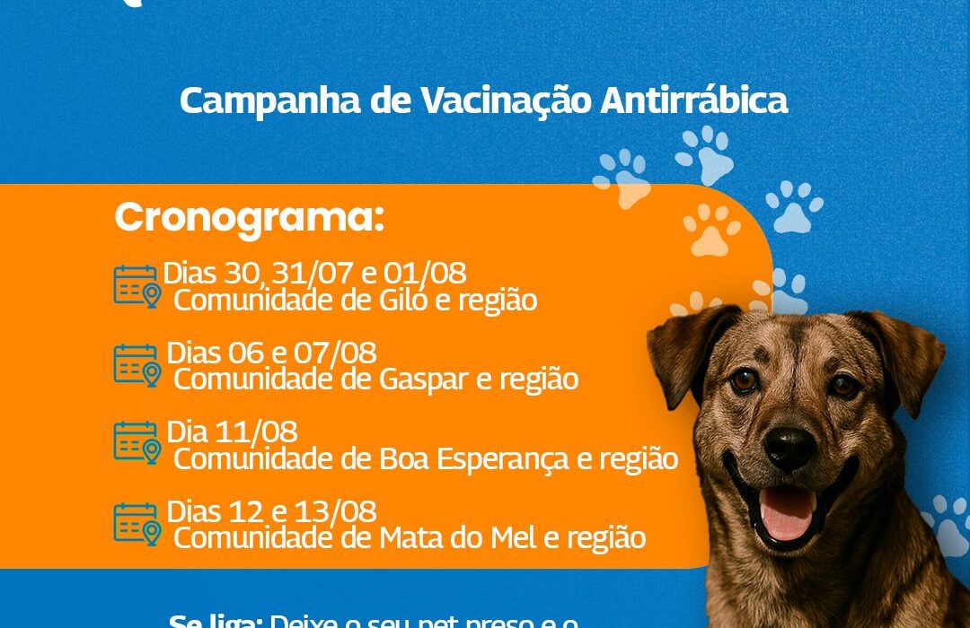 A campanha é uma iniciativa fundamental para o controle da raiva no município, protegendo tanto os animais quanto a população humana. A Prefeitura reforça a importância da adesão de todos os moradores das comunidades contempladas nesta etapa da vacinação.
