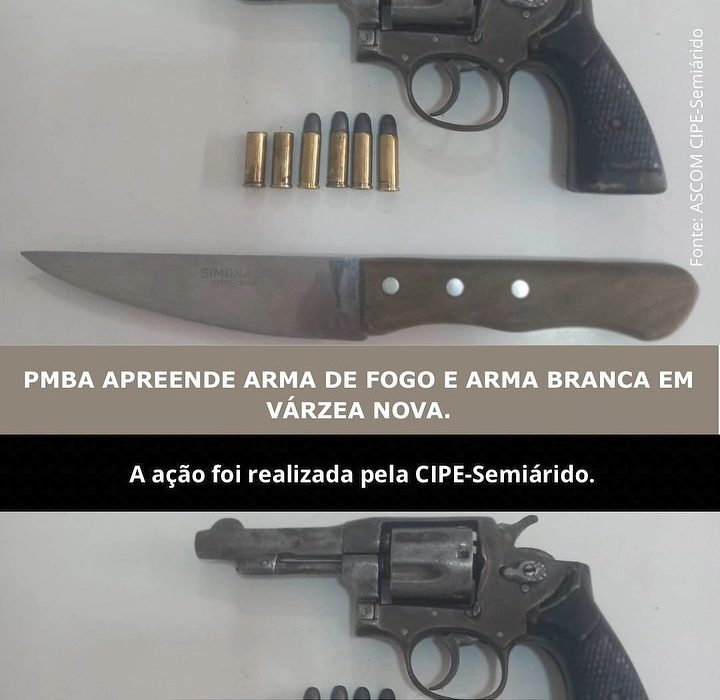 PMBA APREENDE ARMA DE FOGO E ARMA BRANCA EM VÁRZEA NOVA.