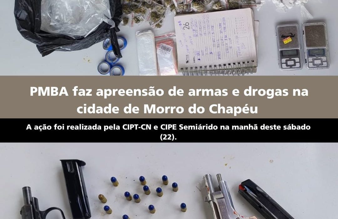 Policia Militar e Cipe/Semiárido faz apreensão de armas e drogas em Morro do Chapéu