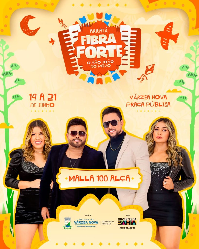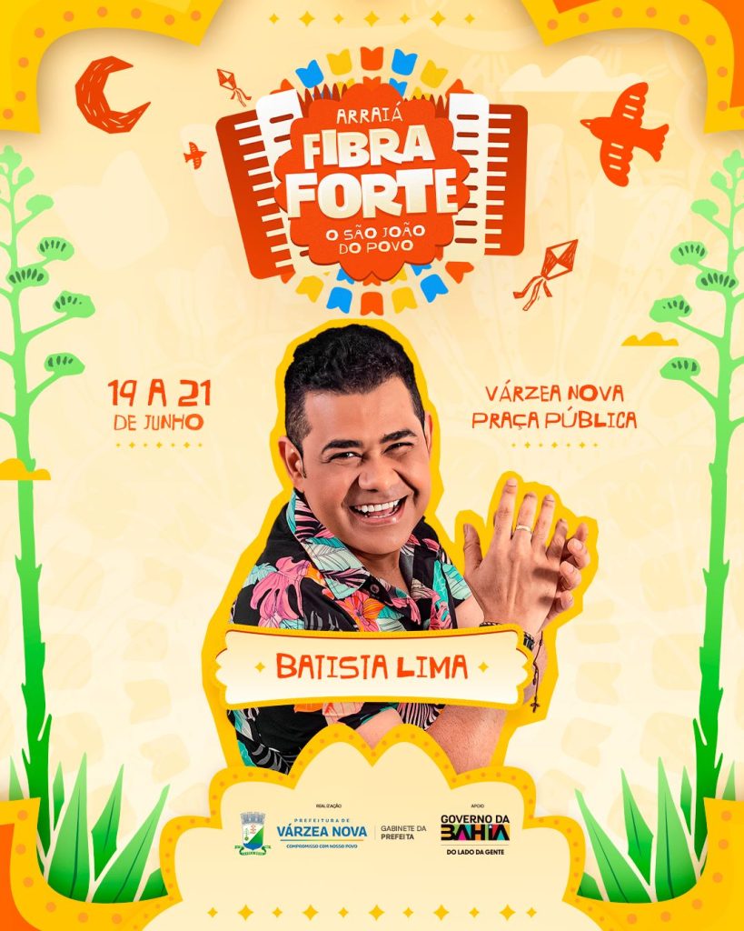 A Prefeitura de Várzea Nova divulgou, nesta terça-feira, 1º de abril, mais três atrações confirmadas para o tradicional Arraiá Fibra Forte, que será realizado entre os dias 19 e 21 de junho. Desta vez, foram anunciados os artistas Netto Brito, Batista Lima e a Banda Malla 100 Alça.
