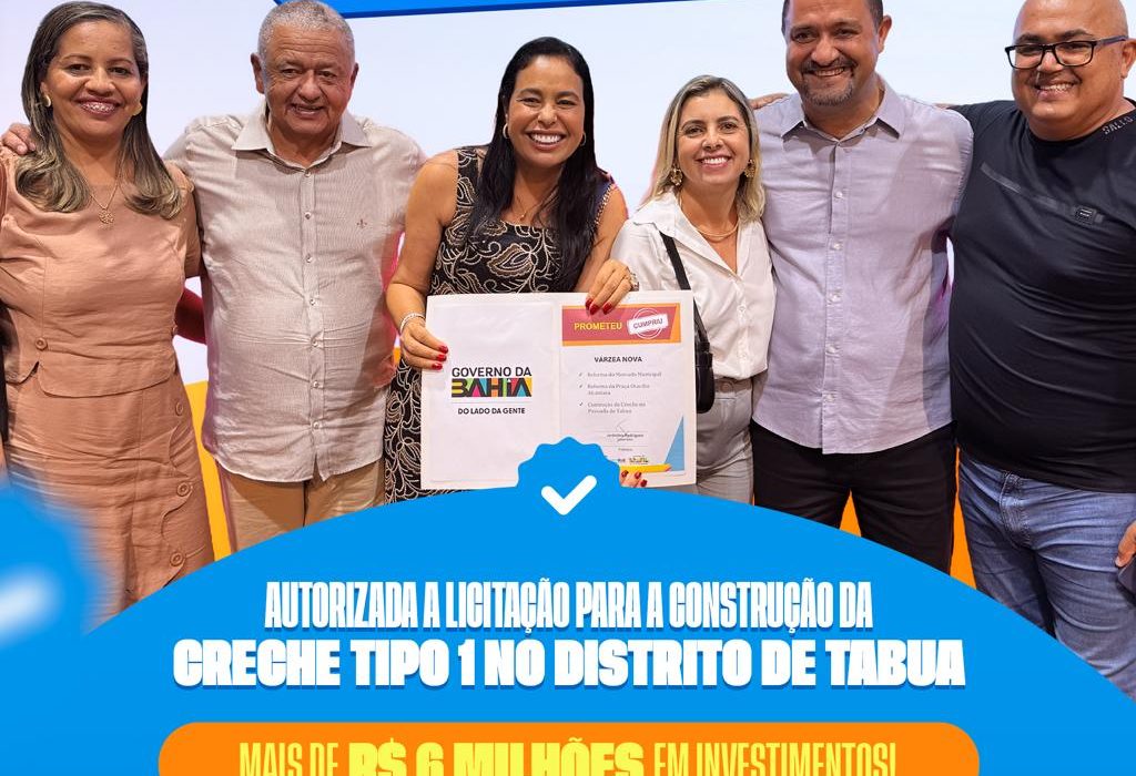 A Prefeitura de Várzea Nova conquistou a autorização para a licitação de uma Creche Tipo 1 no distrito de Tabua, em uma iniciativa que promete ampliar significativamente a oferta de educação infantil no município.