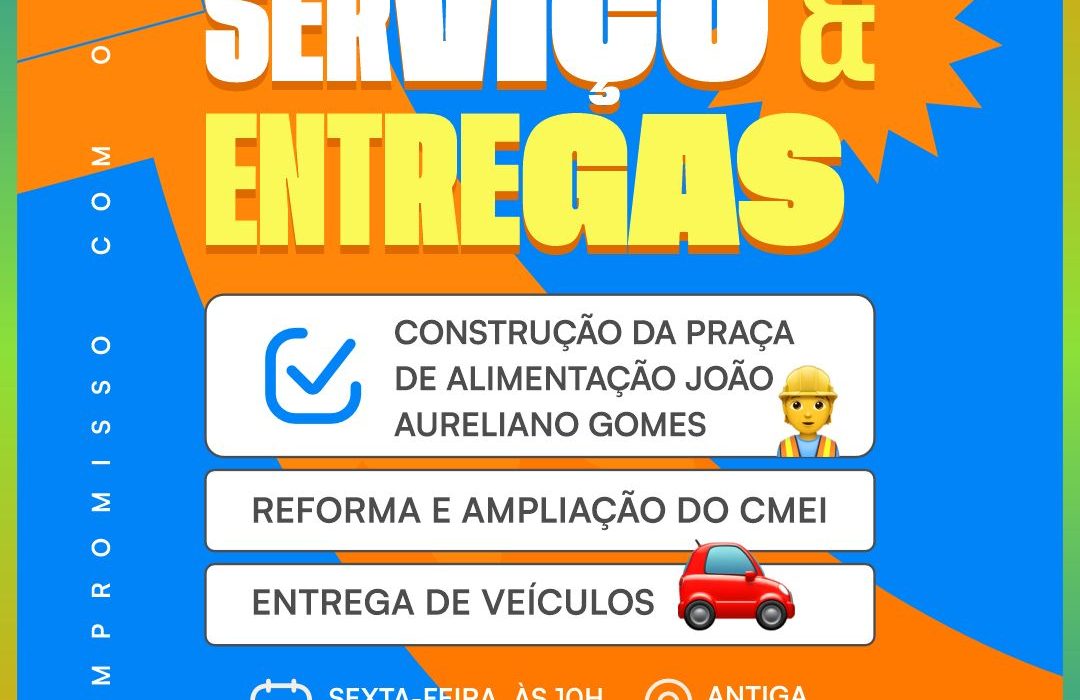 Durante o evento, também será realizada a entrega de novos veículos que irão reforçar a frota municipal e o anúncio de mais investimentos em diferentes áreas da administração pública.