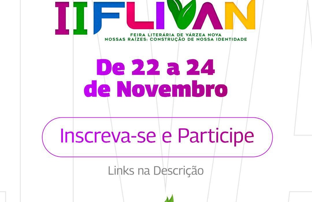 A segunda edição da Feira Literária de Várzea Nova, a FLIVAN, já tem data marcada. O evento será realizado no período de 22 a 24 de novembro, com atividades de literatura, música, dança e teatro, além de outras manifestações e exposições culturais.Neste ano, a FLIVAN abordará o tema “Nossas Raízes: Construção de Nossa Identidade”, para nortear as apresentações dos festivais estudantis, o show de talentos e uma feira econômica cultural. “Será um grande momento de incentivo às novas gerações para o prosseguimento da produção cultural e de tradições da nossa terra”, disse a secretária de Educação, Cultura e Esporte do município.Para participar de algum dos festivais estudantes, do show de talentos ou da feira econômica, os interessados devem se inscrever até o dia 24 de outubro nos links abaixo, de acordo com a escolha.📝 Inscreva-se para os Festivais de Dança, Teatro, Música e Literatura 👉🏻 http://bit.ly/46gllLJ;📝 Inscreva-se para o Show de Talentos 👉🏻 https://bit.ly/3ZNO1JA; 📝 Inscreva-se para a Feira Econômica Cultural 👉🏻 https://bit.ly/48Tpkzw. Assessoria Geral de Comunicação Prefeitura Municipal de Várzea Nova