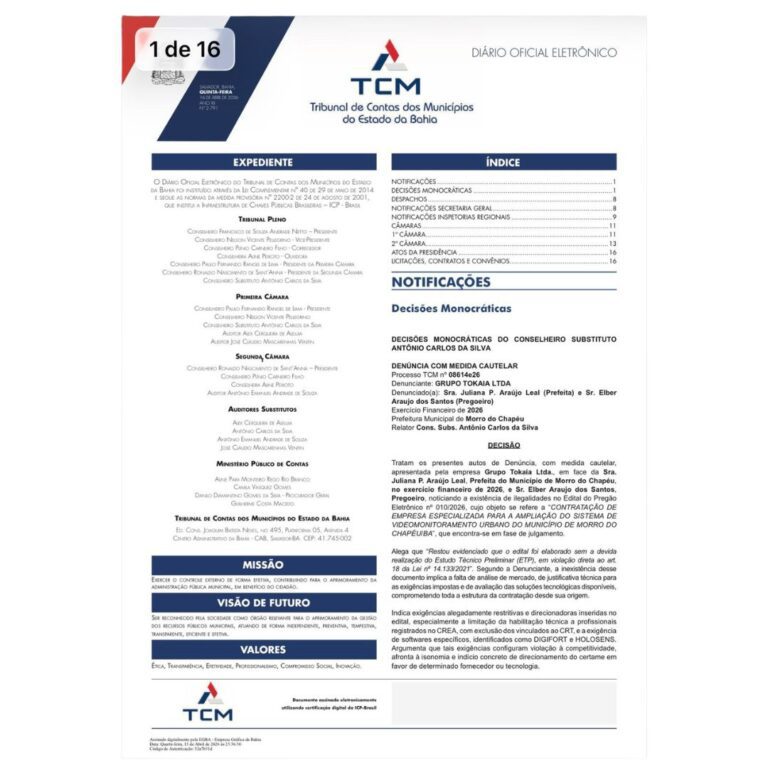O Tribunal de Contas dos Municípios do Estado da Bahia (TCM-BA) analisou uma denúncia com pedido de medida cautelar envolvendo a Prefeitura de Morro do Chapéu, referente ao exercício financeiro de 2026.