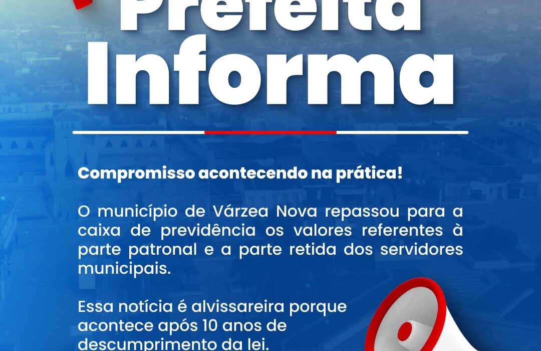 Essa ação representa não apenas uma recuperação das obrigações previdenciárias da prefeitura, mas também um compromisso com o bem-estar dos servidores municipais. A expectativa é que essa retomada contribua para a estabilidade e confiança na gestão pública em Várzea Nova, fortalecendo os direitos previdenciários dos trabalhadores.Com esse gesto, a administração municipal demonstra seu empenho em regularizar as pendências e promover melhorias na gestão dos recursos públicos. A comunidade aguarda ansiosamente por mais ações que beneficiem os servidores e fortaleçam o município.